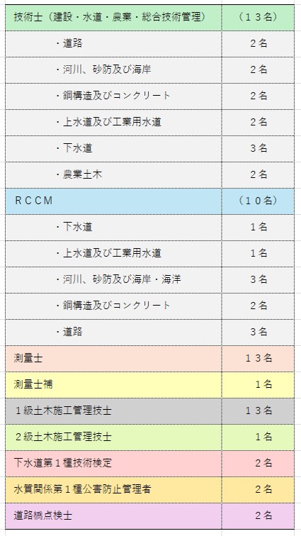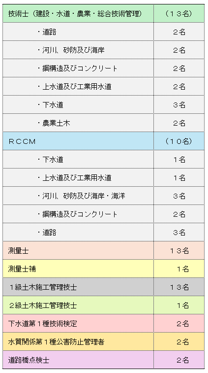 | 技術士(建設・水道・農業・総合技術管理) | (13名) |